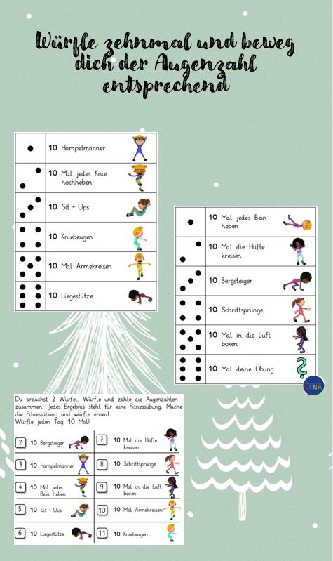 Würfle zehnmal und beweg dich der Augenzahl entsprechend!