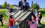 Heute besuchten die fünften Klassen den Spielplatz in Fichtheim - und das natürlich zu Fuß. schließlich war ja WANDER-Tag.
