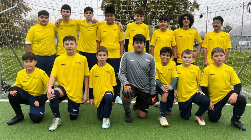 MS Landau erreicht den 2. Platz Am 06.11.24 fand auf dem Kunstrasen im Isar-Wald-Stadion des FC Dingolfing das Kreisfinale der Jungen III im Fußball statt. Im ersten Spiel traf unsere Landauer Auswahl auf die VS Pilsting. Durch die Tore von Mohamad Malekzada (4), Edi Selimi (2) und Yahya Hallom errang man einen ungefährdeten 7:0 Sieg. Im zweiten Spiel stand man der MS Frontenhausen gegenüber. Da es nach der regulären Spielzeit und auch nach der Verlängerung beim torlosen 0:0 blieb, musste ein Elfmeterschießen die Entscheidung bringen. Hierbei trafen alle 4 Landauer Schützen (Hallom Yaha, Ibrahim Mohammad, Murad Nesirli, Jakov Palavra). Da unser Torwart Ali Mohammad einen Elfmeter des Gegners halten konnte, zogen wir mit einem 4:3 Sieg ins Finale ein. Leider mussten wir uns in diesem der MS Dingolfing mit 3:0 geschlagen geben.