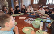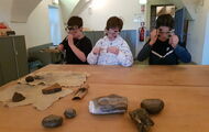 In der Ausstellung erlebten die Kinder außerdem, welche Werkzeuge zur Herstellung von Brot und Käse genutzt wurden und welche Vorteile und Probleme die Ernährung der ersten Bauern mit sich brachte.