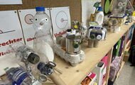 Anschließend erhielt die Klasse im Kunstunterricht die Aufgabe, diesen Müll aufzuwerten. Sie stellten fantasievolle Tierfiguren im Stil der japanischen Künstlerin "Natsumi Tomita" her.