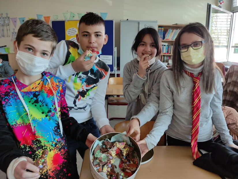 Für die Klasse 5b war heute ein SÜẞER Tag. Denn Frau Bernkopf war gestern fleißig am Werkeln und hat Faschingsschokolade gemacht. Kein Wunder, dass da die Stimmung perfekt war - denn es war sehr lecker! Daher: A großes Danke an Frau Bernkopf!