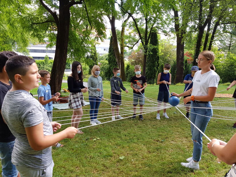 Die Erlebnispädagogik macht es möglich. In diesen Genuss sind in den letzten Tagen einige Klassen der Mittelschule Landau gekommen, darunter auch die Klasse 5a. Die Sozialpädagogin Johanna Plötz führte zusammen mit ihrer Praktikantin zahlreiche Gruppenspiele durch, die die Persönlichkeit und die sozialen Kompetenzen – besonders das Zusammengehörigkeitsgefühl - fördern bzw. stärken sollten. Mit Begeisterung und Geduld machten sich die meisten Schüler an die Aufgaben: so mussten z. B. „Schafe“ ins Krankenhaus gebracht, Klimmzüge gemacht und die Gesamtzahl der Haustiere der anwesenden Schülerinnen und Schüler in Gruppen geschätzt werden.