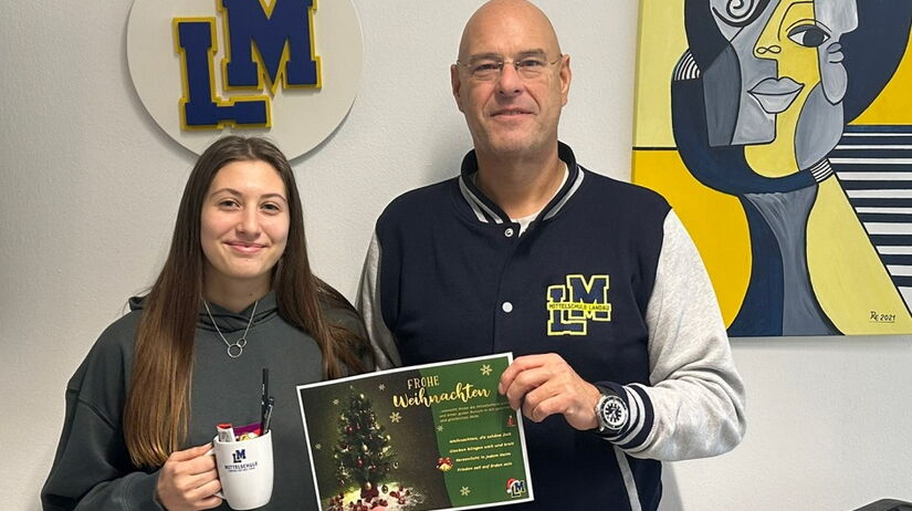 Im Rahmen des Wahlpflichtfaches „Wirtschaft und Kommunikation“ gestaltete Evelyn ihre Karte mit viel Kreativität und einem stimmungsvollen Design, das Fachlehrerin Anna Peer und Rektor Christian Ehrenreich überzeugte. Damit repräsentiert ihre Arbeit die Schule nach außen: Die Karte wird als offizieller Weihnachtsgruß der MS Landau verschickt und sorgt für festliche Freude bei allen Empfängern.