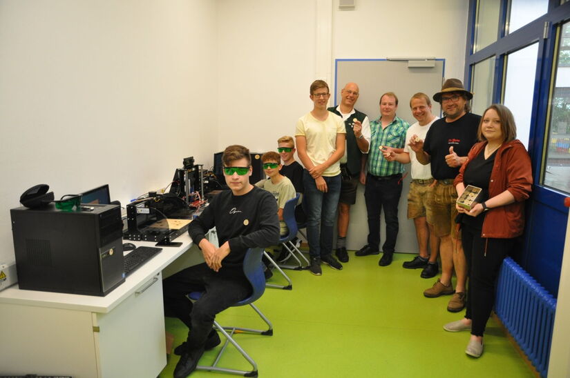 Die beiden Festwirte Georg Schachtner und Georg Maierhofer des neuen Bierzeltes „Zum Maschal“ auf dem in Kürze stattfindenden Landauer Volksfest, besuchten heute unsere Schülerfirma. Beide überzeugten sich von der tollen Qualität und dem besonderen Design der stylischen, modernen und exklusiven Holzbuttons aus Haselnussholz, die derzeit durch die Schülerfirma „LASERN UND DA DRUCK“ produziert werden und nahmen erste Exemplare in Empfang. Sichtlich erfreut meinte Johnny Maierhofer: “Die sind echt super! Wir nehmen so viele, wie ihr herstellen könnt!“
