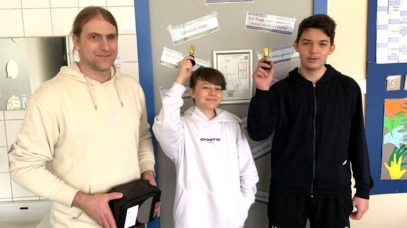 In nur zwei Schulstunden haben es Niklas Frelich und Toni Scanica aus der Klasse 7a geschafft, ihre Klasse aus dem Labor zu befreien. Mit Hilfe von einigen Zahlencodes sowie Rätseln konnten die Schüler den Tresor knacken und ihren Pokal verdienen. Im Rahmen des NuT Unterrichts wurde der Escape Room mit Unterstützung von Herrn Fiedler durchgeführt.