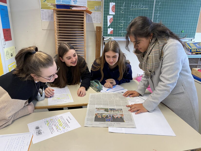 Letztes Jahr war Maryam Sultani selbst noch Schülerin an der MS Landau. Sie besuchte die M10, absolvierte den MSA und besucht nun die FOS. Schon nach ihrem schulischen Praktikum in der 10. Klasse war es für sie klar: Ich möchte Zeitungsredakteurin werden! Diesem Berufsziel geht sie nun auch im Rahmen eines Praktikums der FOS nach. Lange hat sie recherchiert, hat mehrfach die MSL besucht - nunmehr als Redakteurin und nicht mehr als Schülerin – hat eine Vielzahl von Gesprächen und Interviews geführt, war vielfach in der Deutschklasse. Heute erschien ein ganzseitiger Artikel in der Landauer Ausgabe der PNP, in dem sie SchülerInnen aus der Ukraine, die im letzten Schuljahr die Willkommensklasse besuchten, im laufenden Jahr in einer Deutschklasse beschult werden, berichten lässt. Es geht um die Flucht, über neue Freunde und über ihre Ziele. Die Schülerinnen freuten sich sehr, als Maryam ihnen den Bericht vorstellte!
