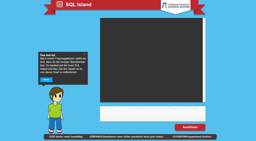 Das Erlernen der Syntax zum Filtern, Sortieren, Löschen oder Generieren von Datensätzen ist nicht unbedingt einfach. Doch mit Begeisterung arbeiten sich die Schülerinnen und Schüler der 10b von Befehl zu Befehl – schließlich gilt es, in dem Escape-Room Game „SQL Island“ von der Insel zu entfliehen. Du willst das auch können?
