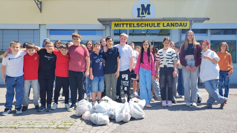 Mehr als ein Dutzend Müllsäcke haben die 6. Klassen mit Flaschen, leeren Verpackungen bis hin zu Metallteilen und einem kaputten Tesa-Abroller heute gefüllt. Und bei dem strahlenden Sonnenschein hat es a allen riesigen Spaß gemacht .