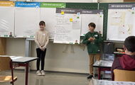 Daher trafen sich heute die Projektsprecher mit den KlassenleiterInnen und den beiden Schulcoaches Eva und Ruben, um die Projektideen der Klassen in größerer Runde vorzustellen, darüber zu diskutieren und die Umsetzung zu überlegen. Dabei wurde eine breite Facette von Vorschlägen zu den Themen Ernährung, Bewegung und Persönlichkeitsbildung genannt. Und - logisch - es waren echt viele tolle dabei: So war etwa die Rede von einer Open Stage, Sporttagen, einer gesunder Pausenbox oder einem Fotobuch mit Rezepten und Bewegungsideen u.v.m.. Wir freuen uns schon auf die Umsetzung!