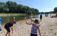 Natürlich durfte ein Picknick am nahen Isarstrand nicht fehlen. Anschließend wurden dort Bäume und Pflanzen bestimmt, Steine künstlerisch verziert, gespielt und - zwischendurch als willkommene Abkühlung - auch ausführlich im Wasser gepritschelt.