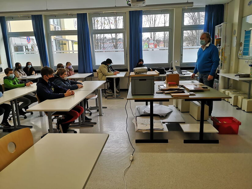 Gert Aufschläger, Leiter der Außenstelle der Hans-Glas-Berufschule in Landau, übernahm heute persönlich die Information über die Ausbildung zum Beruf Schreiner/Tischler. Interessierte Schüler aus den Jahrgangsstufen 8 und 9 folgten gebannt seinen Ausführungen, die durch aussagekräftige Bilder und einen tollen Imagefilm umrahmt wurden. Schnell wurde klar: Der Schreinerberuf von heute hat nur mehr am Rande mit dem Bild des Berufes, so wie er bei z.B. „Meister Eder und sein Pumuckl“ gemalt wird, zu tun. Vielmehr halten immer mehr hochmoderne und computergesteuerte Maschinen Einzug, was den Beruf nicht nur sehr abwechslungsreich und anspruchsvoll, sondern auch interessant gestaltet. Selbstverständlich blieben aber handwerkliches Geschick und Präzision von ganz wichtiger Bedeutung, führte der Schulleiter aus. Herr Aufschläger wird im neuen Schuljahr eine Reihe der motivierten Zuhörer im BGJ wieder sehen...