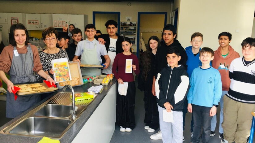 Fragen dieser Art - und noch viiiele mehr - bekam unsere Deutschklasse 3 heute beantwortet. Logisch, dass viele von diesen Schülern aus fernen Ländern und mit einer anderen Religion fast nichts über dieses Fest, auf das wir Christen und alle freuen, wissen. Deshalb hat sie Anna Peer und ihre Gruppe Ernährung und Soziales eingeladen. Allerdings wurde da nicht nur viel gesprochen und erklärt. Vielmehr färbte man gemeinsam Eier, unterhielt sich dabei über diverse Osterbräuche und ließ sich zum Abschluss gemeinsam hergestelltes Ostergebäck aus Quark-Öl-Teig genüsslich schmecken.