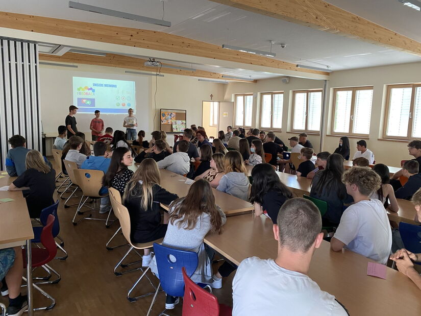 Am Donnerstag stellten die Schüler, einzeln oder in Gruppen, ihren Ausbildungsberuf allen Achtklässlern in der Mensa vor. Dabei nannten die Jugendlichen auch Vor- und Nachteile des Berufes und schilderten ihre Erlebnisse in der Schnupperwoche.