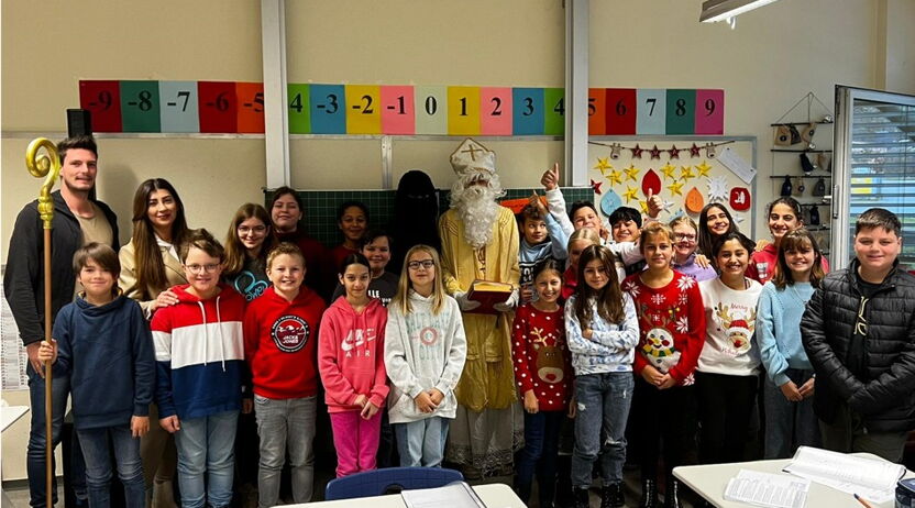 Der Heilige Nikolaus besucht die Mittelschule Landau: Viel Lob für die Schüler und süße Geschenke