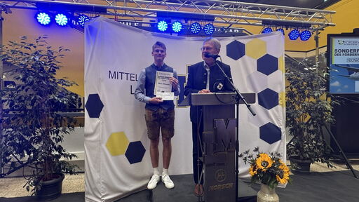 Josef Schätz überreicht Max Altmann den Sonderpreis des Fördervereins