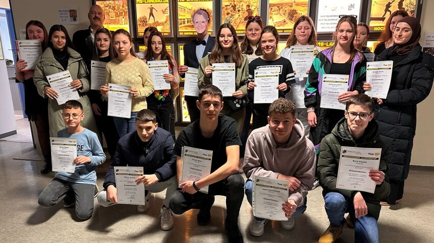 Heute gab´s wieder mal Zwischenzeugnis und somit bekamen die SchülerInnen einen Zwischenbericht über den aktuellen Stand ihrer Leistungen in allen Fächern. Eine entsprechende Bemerkung durfte da natürlich auch nicht fehlen. Die jeweils Besten einer Klasse, die sich durch den besten Schnitt in allen Fächern freuen konnten, wurden besonders geehrt: Sie bekam die Sonderurkunde „Klassenbeste/r“. Logisch, dass wir mit dieser Elite - noch kurz vor der großen Faschingsparty - auch ein Gruppenfoto machten. Bravo, weiter so!