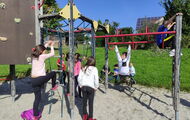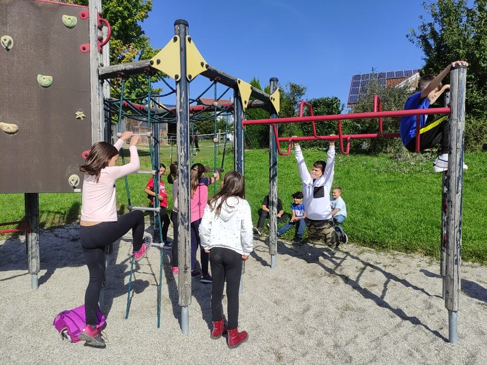 Heute besuchten die fünften Klassen den Spielplatz in Fichtheim - und das natürlich zu Fuß. schließlich war ja WANDER-Tag.