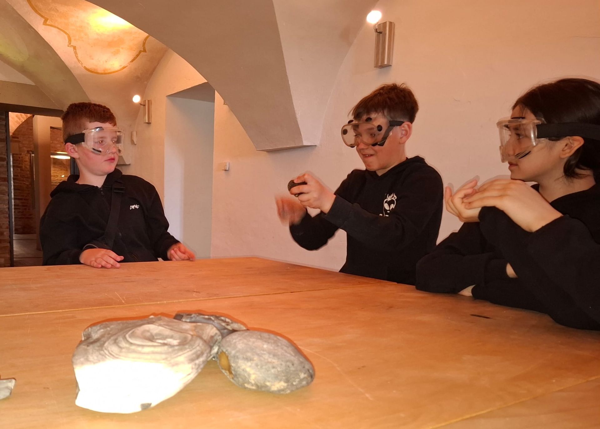 In der Ausstellung erlebten die Kinder außerdem, welche Werkzeuge zur Herstellung von Brot und Käse genutzt wurden und welche Vorteile und Probleme die Ernährung der ersten Bauern mit sich brachte.