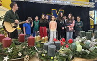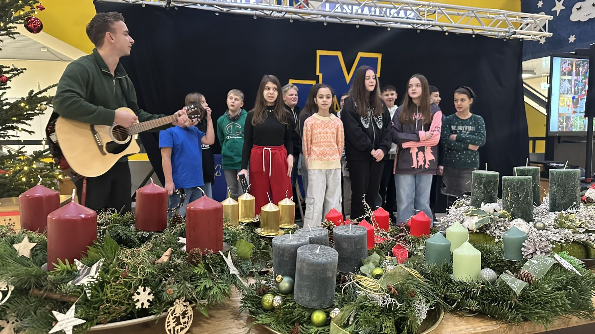Heute gleich zu Unterrichtsbeginn trafen sich die Klassensprecher aller Klassen in der Aula zur Adventskranzfeier, die in diesem Jahr erstmals mit Pastor Simon Höfli durchgeführt wurde. Justin Gaube mit seiner Klasse 6a umrahmte die Feierstunde gekonnt musikalisch und präsentierte zu diesem Anlass auch den selbst komponierten und getexteten Schulsong „Leben, lernen, lachen“, in dem es um das Miteinander bei uns an der MSL geht. Ein Thema, das sicherlich auch perfekt zu den Adventskränzen passte, über die Pastor Höfli Vieles zu erzählen wusste.