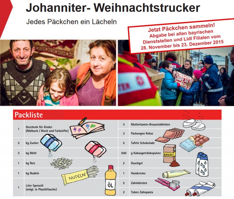 Auch dieses Jahr beteiligen wir uns wieder an der Aktion Johanniter Weihnachtstrucker