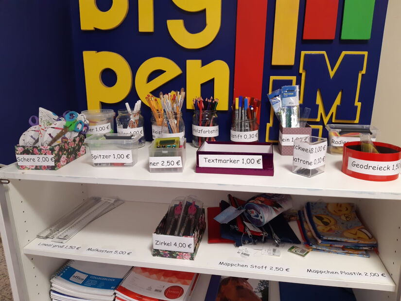 Bald ist es wieder so weit: Unsere schuleigene Firma „Bigpen“ öffnet wieder seine Pforten. So können wieder alle Schülerinnen und Schüler in den Pausen zu günstigen Preisen viele Materialien, die man in für die Schule braucht, in den beiden Pausen gleich bei uns in der Aula erstehen. Das Angebot lässt sich wirklich sehen und reicht von Spitzer, über Textmarker, Scheren und Zirkel bis hin zu verschiedenen Heften, Blöcken und Linealen.
