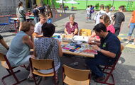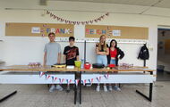 Unzählige leckere Essensangebote aus aller Welt, leckere Cocktails (natürlich ohne Alkohol?), Dosenwerfen, Masskrugstemmen, cooles Kunstprojekt, Donuts, Zuckerwatte, Sackhüpfen, Fairtrade – Eis, Tombola, Losstand, Zielwerfen mit nassem Tafelschwamm, Flashmob „Bewegte Pause“ mit Patrick Pfisterer, Wassermelonen, Flossenwettlauf, Hot Dogs, Sandwiches … und natürlich als Main Act „Clubbing mit DJ ARCANDEX“ in der durch unser TechnikTeam fast professionell zur Großraumdisko umgebauten Aula, MC FERGURSON hat uns auch besucht und ein paar heiße Nummern auf seinen Turntables performt und Vieles mehr… Kurz gesagt: Ein tolles Schulfest!