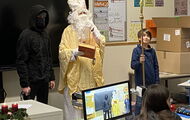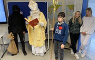 Der Heilige Nikolaus besucht die Mittelschule Landau: Viel Lob für die Schüler und süße Geschenke