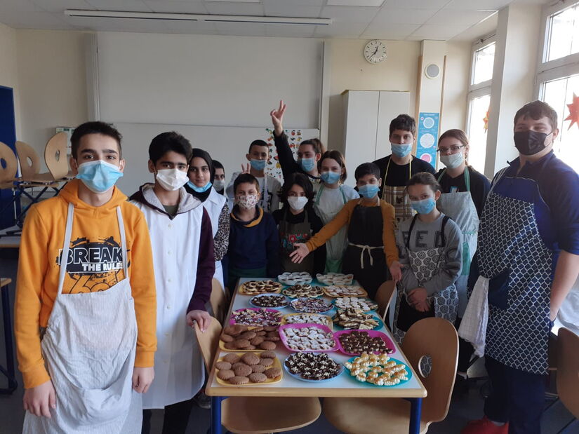 Oftmals hatte man das Lied in letzter Zeit aus dem Klassenzimmer unserer Deutschklasse gehört: „In der Weihnachtsbäckerei … zwischen Mehl und Milch denkt … tralala!“ Gestern aber wurde aus dem Lied Realität, denn gemeinsam mit Christine Knauer und Tanja Ramizi machten sich die Kinder und Jugendlichen aus verschiedensten Herkunftsländern daran, tatsächlich selbst tolle Plätzchen zu backen, aufwändig zu verzieren und – natürlich! – ausgiebig zu probieren. … mmmmmmh: das schmeckt!