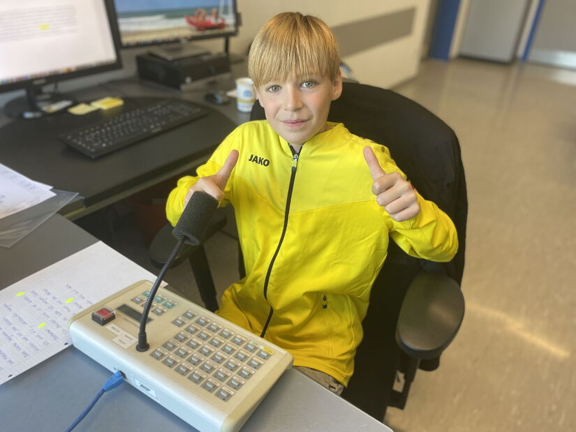 Heute gibt´s von der Klasse 6c ein besonderes Angebot: Gesunde Pause ist angesagt. Damit die Mitschüler auch alle Bescheid wissen, hat Lukas gestern extra eine Durchsage an die ganze Schule gemacht.