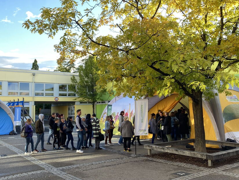 Eine große Anzahl von Eltern der Kinder, die derzeit unsere 5. und 6. Klassen besuchen, erhielten in der Aula wichtige Informationen zum Projekt „Philipp Lahm Schultour“, die bereits am Vormittag von den drei 6. Klassen besucht wurden. Unser Schulcoach Eva Geraghty stellte die drei Projektmodule Bewegung, Ernährung und Persönlichkeitsentwicklung sowie die Intension von Philipp Lahm vor und betonte, dass nach dieser Projektwoche nachhaltig Projekte an der Schule initiiert werden, um die Ziele nachhaltig zu verfolgen. Selbstverständlich durften die Eltern selbst im Anschluss die 3 Eventzelte persönlich besuchen und konnten sie nachvollziehen, was Teile ihrer Kinder bereits am Morgen erleben durften.