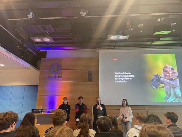 Letzten Mittwoch besuchten wir, die beiden 10. Klassen der MSL, die Berufs-orientierungstage 2024 beim Bayrischen Rundfunk in München. Zuerst hörten wir ein paar interessante Berichte von BR-Mitarbeitern über ihre Berufe und wie sie zum BR kamen. Nach einer kurzen Pause mit Vitamin-Booster (Säfte und frisches Obst) gingen wir mit den für uns zuständigen Mitarbeitern in verschiedene Workshops. Hier musste jeder ran: Interviews über Berufe führen und filmen und Umfragen draußen auf der Straße machen. Mittags konnten wir uns bei Nudeln mit Tomatensoße stärken, bevor es in die zweite Workshop-Runde ging. Jetzt durften wir einen Blick in die Studios der Sender Bayern 3 und Bayern 1 werfen mit den bekannten Radiomoderatoren Susanne Rohrer, Sebastian Winkler und Katja Wunderlich. Wir waren quasi live dabei! Vorgestellt wurde uns auch ein interessantes neues Projekt - die JobChallenge - bei der Jugendliche zwischen 15 und 18 Jahren Ausbildungs-berufe ausprobieren dürfen und dabei eine Challenge erledigen müssen. Natürlich vor der Kamera! Eine ganz witzige Sache – vielleicht auch etwas für DICH!