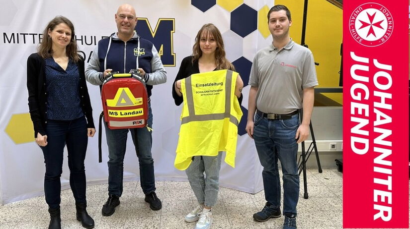 Bereits seit gut einem Schuljahr läuft der Schulsanitätsdienst bei uns sehr gut. Gut ausgebildete, motivierte und ausgerüstete Kinder und Jugendliche setzen sich hier engagiert für Ihre Mitschüler ein, stärken dabei auch ihre Sozialkompetenz. Für die nächsten Schuljahre wurde heute durch Schulsozialpädagogin Isabell Hiller und Rektor Christian Ehrenreich mit den Johannitern ein Kooperationsvertrag unterschrieben. Gemeinsam mit Sophia Schaaf, Sachgebietsleiterin Familie und Jugend und dem Stellvertretenden Ortsbeauftragen Andreas Scheuerer plante man gleich die Ausbildung der neuen Schulsanitäterinnen, die noch im Sommer dieses Jahres umgesetzt werden wird. Auch für Auffrischungskurse für Lehrkräfte wurde schon ein Vorgehen besprochen. Wir freuen uns auf eine gewinnbringende und langfristige Kooperation.