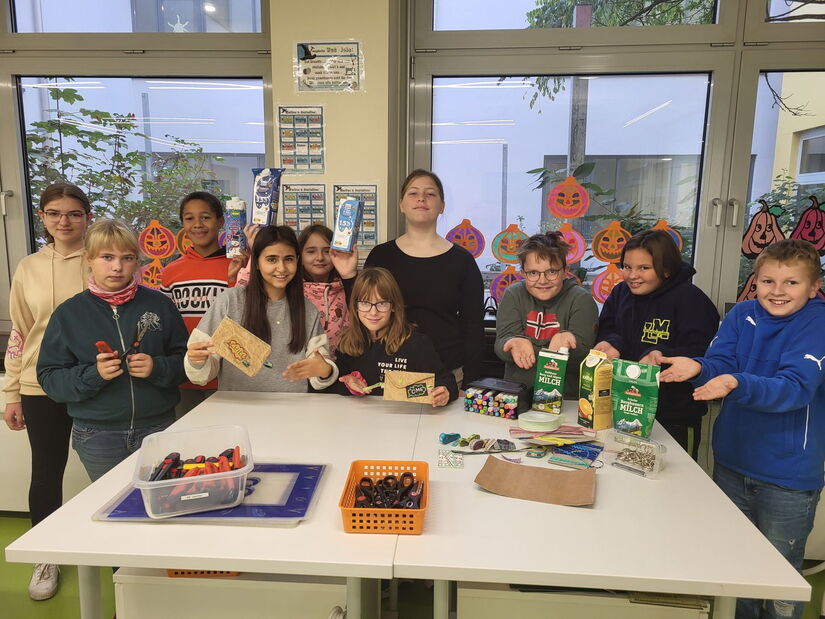 Tetrapacks verwandeln sich in stylische Mäppchen: "Upcycling" auf dem Stundenplan der 5b