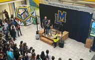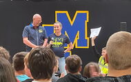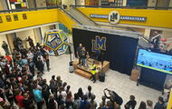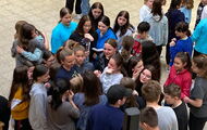 Deswegen war die Stimmung heute schon ein wenig traurig, als Herr Ehrenreich Frau Plötz in der voll besetzten Aula verabschiedete. So manch einer vergoss auch ein Tränchen, als Johanna das Mikrofon übernahm und wirklich rührende Worte an uns richtete. „Ich war immer so gerne bei euch, hier an der MS Landau! Ich werde euch nie vergessen!“ Damit sie uns ganz sicher in Erinnerung behalten wird, übergab Rektor Ehrenreich einen - natürlich vegetarischen - Geschenkkorb mit allerlei Leckereien und vor allem ein Plakat, auf dem jeder einzelne Lehrer oder Schüler unterschrieben hatte. Man kann sich vorstellen, dass beim Abschlusslied jede/r in der Aula, ganz egal ob groß oder klein, lauthals mitsang: „Ein Hoch auf dich, auf dieses Leben, auf den Moment, der immer bleibt! Ein Hoch auf dich, auf jetzt und ewig, auf einen Tag Unendlichkeit!!“ … wie passend!