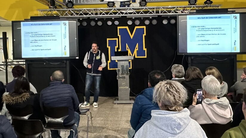 Rektor Christian Ehrenreich und das Team der Mittelschule Landau konnten eine ganze Reihe von interessierten Eltern und deren Kinder beim Infoabend über M-Klassen und den Gebundenen Ganztag an der Mittelschule Landau in der Aula begrüßen. Die bei der Veranstaltung verwendete Präsentation finden Sie im Downloadbereich unter der Rubrik „Elternabend“.