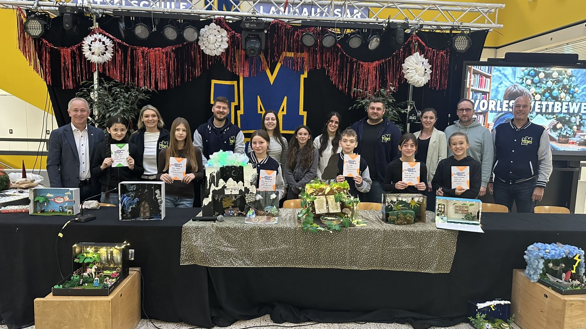 Im Anschluss an die Lesungen fand die feierliche Siegerehrung statt, die der Schatzmeister des Fördervereins Robert Elsberger durchführte – begleitet von einem kleinen Pressetermin. Dank der Unterstützung des Fördervereins und des Elternbeirats konnten attraktive Preise überreicht werden: Alle Teilnehmer freuten sich über Bücher- und Kinogutscheine.