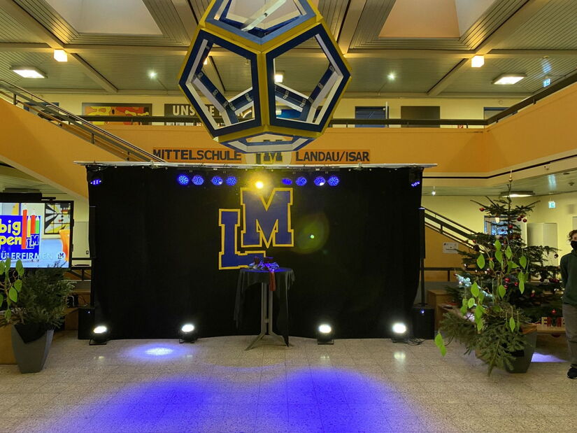 Damit hatte nun wirklich kein Schüler oder Lehrer gerechnet! Als diese heute Morgen die Aula betraten, rieb wohl so mancher ungläubig Augen und Ohren. Das war nämlich noch nie da, dass man durch Weihnachtslieder aus den beiden leistungsfähigen Anlagen sowie einer Vielzahl von Lichtern und Scannern überrascht und weihnachtlich willkommen geheißen wurde.