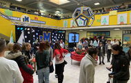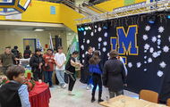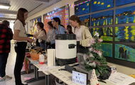 Weihnachtliche Pause: Die ganze Aula voller Stände, Schüler und Eltern