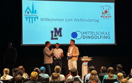 Schnell hatte er die mehr als 350 Kinder aus den 5. und 6. Klassen der Mittelschulen Dingolfing und Landau in seinen Bann gezogen, denn Jimmy Hartwig erzählte von seinem Leben. Und das ungemein spannend und mitreißend. (Lieder) kein Wunder, denn der ehemalige Bundesligafußballprofi und Nationalspieler hatte es nicht immer leicht in seiner Kindheit, wuchs er doch als Sohn eines amerikanischen Soldaten mit seiner Mutter beim Großvater in Offenbach auf. Vor dessen Schlägen flüchtete er nach draußen zum Fußballspielen, widerstand all den Anfeindungen, die er als „Schwarzer Jimmy“ auch dort erleiden musste. Seine Botschaft an die Jugendlichen: Ihr seid stark, habt alle Chancen. Geht euren Weg, fair und anständig, strengt euch an, zeigt Respekt, schämt euch für nichts und niemanden – und wusste hier auch mit Vergleichen zu den Weltfußballern Ronaldo oder Messi zu überzeugen. Denn auch „sie sind durch harte Arbeit, durch viel Fleiß und Training zu Weltstars geworden“. „Das könnt ihr alle auch!“, ist sich Jimmy - so möchte er von den Kindern genannt werden - sicher! Viel Spaß hatten die Kinder auch noch bei den anschließenden Stationen, an denen sie etwa ihr Talent beim Torwandschießen unter Beweis stellen, das Geburtsland auf einer Weltmarke markieren oder Straßenbilder zum Thema Kinderrechte malen durfte.