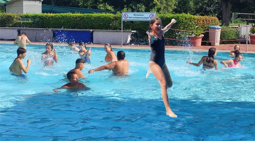 Schwimmen, plantschen … und verwegene Sprünge: 6. Klassen im Landauer Freibad