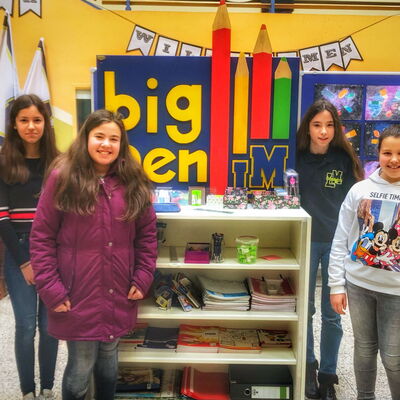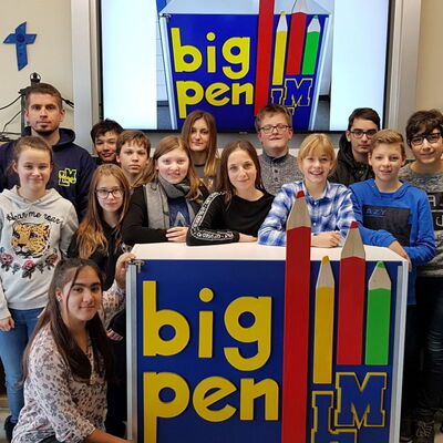 Mit Bigpen haben wir eine schuleigene Schreibwarenfirma bei uns im Haus, die täglich in der Aula alle Schülerinnen und Schüler sowie selbstverständlich auch die Lehrkräfte mit gebräuchlichen Schreibutensilien versorgt. Wir haben ein auf den Bedarf ausgerichtetes breites Angebot - von Bleistiften, Radiergummis über Zirkel bis hin zu Blöcken oder Vokabelheften. Die Firma wird durch unsere 7. Klassen und die Deutschklasse organisiert, die sich hier reihum als echte „Geschäftsleute“ präsentieren. Da heißt es Verkaufsgespräche führen, Abrechnungen erstellen, Kalkulationen machen, Einkaufen usw.: „Wir wirtschaften für einen Markt in der Schule!“