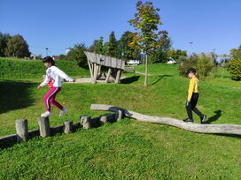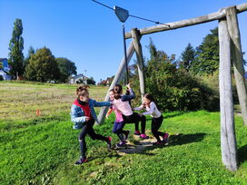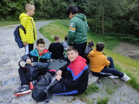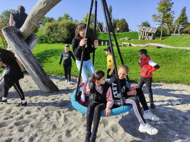 Heute besuchten die fünften Klassen den Spielplatz in Fichtheim - und das natürlich zu Fuß. schließlich war ja WANDER-Tag.