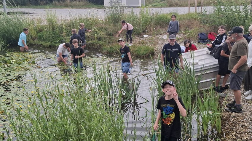 Die 5. Klassen starteten in die Projektwoche "Alltagskompetenzen" beim örtlichen Fischereiverein "KFV Landau". Beim Vortrag von Professor Doktor Huber wurde mit den Schülern die große Bedeutung von Wasser in unserem Leben gemeinsam erarbeitet. Anschließend wurde es praktisch. Am anliegenden Weiher wurde geschaut, welche Lebewesen sich in unseren Gewässern befinden. Vom "Wasser auf den Teller" war danach die Devise. Zum Schluss wurden Fische zubereitet und gemeinsam gegessen. Die Kinder ließen sich die selbstgemachten Fischbrötchen schmecken.