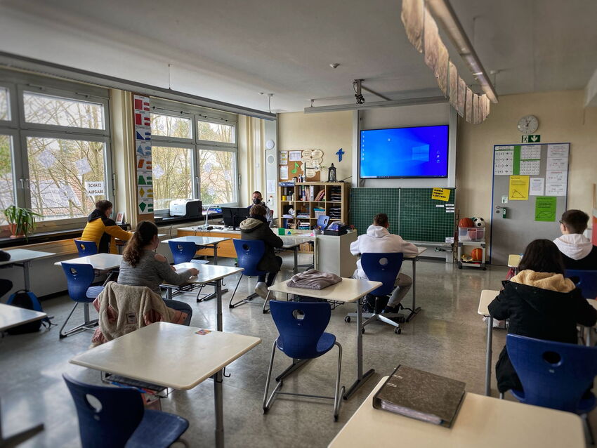 - Die Klassen werden aufgeteilt auf zwei nebeneinanderliegende Klassenzimmer.