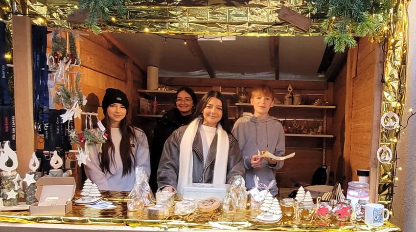 Wie jedes Jahr durften wir auch an diesem Wochenende beim idyllischen Weihnachtsmarkt der Förderer des Heimatmuseums mitwirken. In den letzten Wochen hatten viele Klassen und Gruppen eine reiche Auswahl an tollen adventlichen Produkten hergestellt, die durch die 8. Klassen verkauft wurden. So konnten sich unsere Kunden über Fairtradeprodukte, Holzkerzen, Schüsselanhänger unserer Schülerfirma „Stick a style“, selbstgemachte Plätzchen, Laserkunstobjekte von „Lasern und da Druck“ oder Leuchtgläser freuen. Wie immer waren unsre Crêpes der volle Renner.