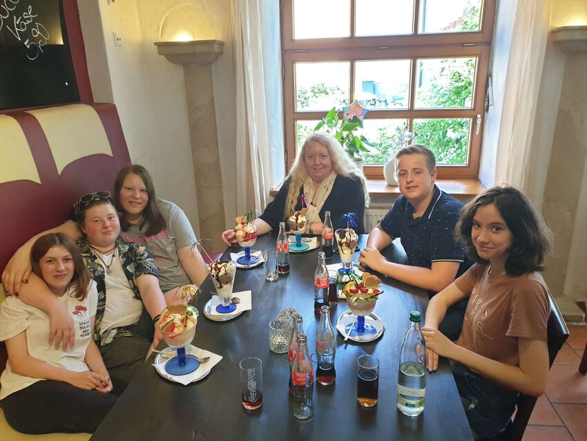 SeMi, das bedeutet für uns, dass wir den Senioren in der Heiliggeist-Bürgerspital-Stiftung Freude bereiten. Nun bekamen die Teilnehmer_innen der SeMi - Gruppe der Mittelschule Landau nach einem Schuljahr mit Ideen und Arbeit (Weihnachskerzen, Faschingszeitung, etc.) zur Belohnung Eis und kalte Getränke. Herzlichen Dank!