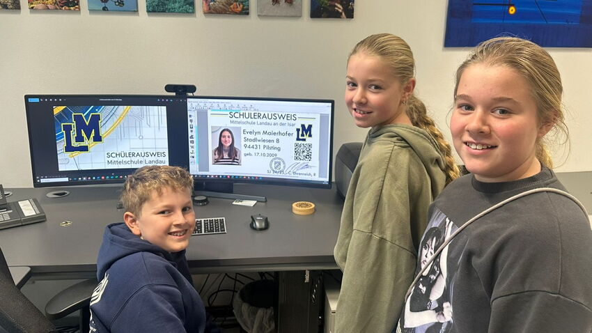 Derzeit hat die M7c als stolze Inhaber der Schülerfirma „Cards4all“ richtig viel zu tun, denn die Auftragsbücher sind voll: Alle unsere neuen Schüler wollen nämlich einen Schülerausweis .. und das ist ganz genau das Geschäftsfeld der Klasse. Cards4all produziert nämlich coole und moderne Schülerausweise im Scheckkartenformat. Sie haben dafür extra einen Kartendrucker und ein entsprechendes Programm.