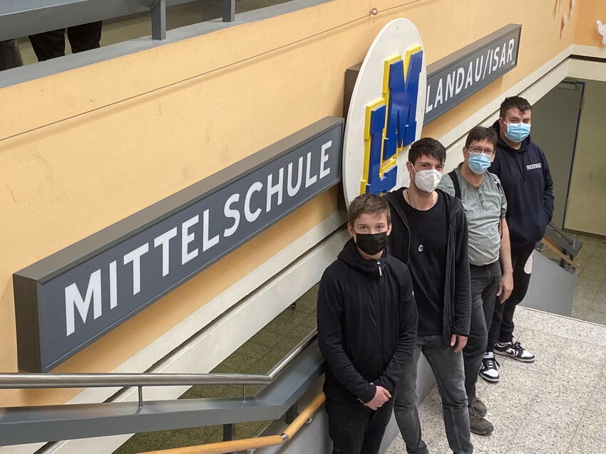 Schild „Mittelschule Landau/Isar“ wertet unsere Aula auf