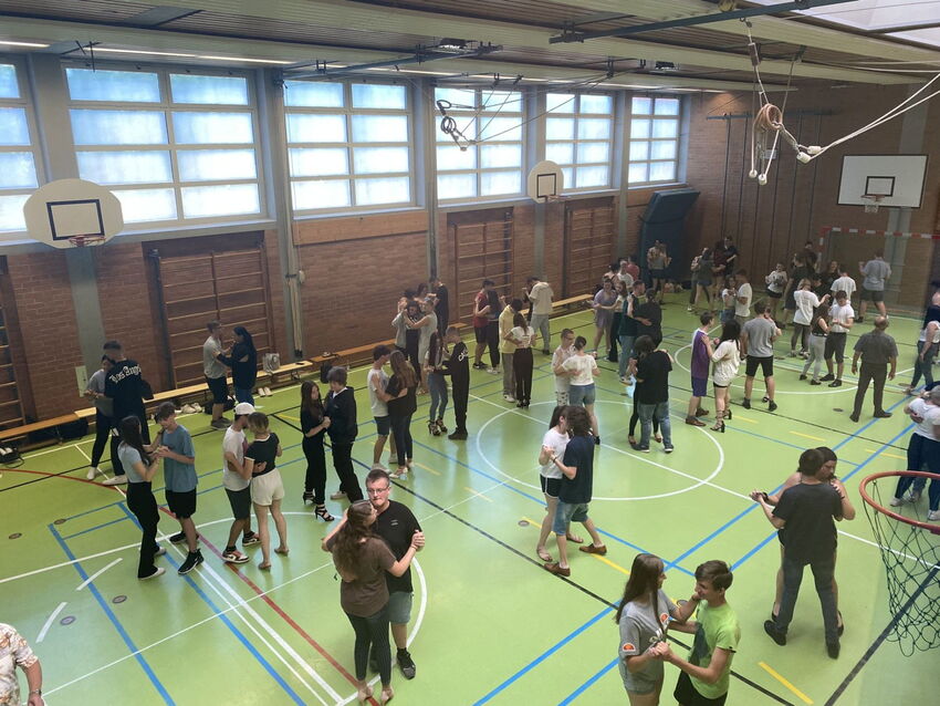 In den nächsten 4 Tagen ist Tanzkurs angesagt – diesmal gleich für 6 Klassen, denn ausnahmsweise sind die beiden 10. Klassen auch mit am Start. Schon etwas aufgeregt sind demnach seit heute und in den nächsten vier Tagen etwa 100 Jugendliche am Werken, um gemeinsam die wichtigsten Standardtänze zu erlernen. Herr Steinecker, der Tanzlehrer, hat da schon eine große Aufgabe … wir sind aber sehr zuversichtlich, dass er auch in diesem Jahrgang wieder alle für den Abschlussball am Donnerstag die wichtigsten Schritte dieser „wichtigen“ Kulturtechnik näherbringen wird. Erste Eindrücke stimmen da sehr optimistisch;)